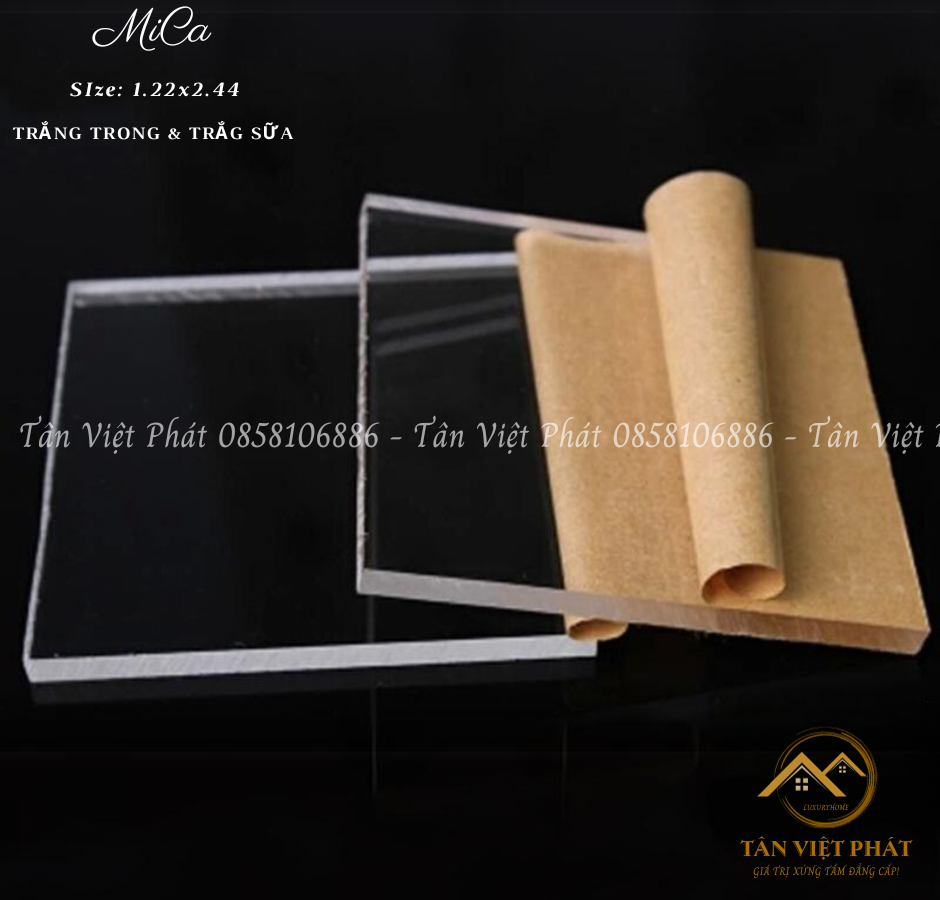 – Kích thước, khổ tấm mica: 1220mm x 2440mm