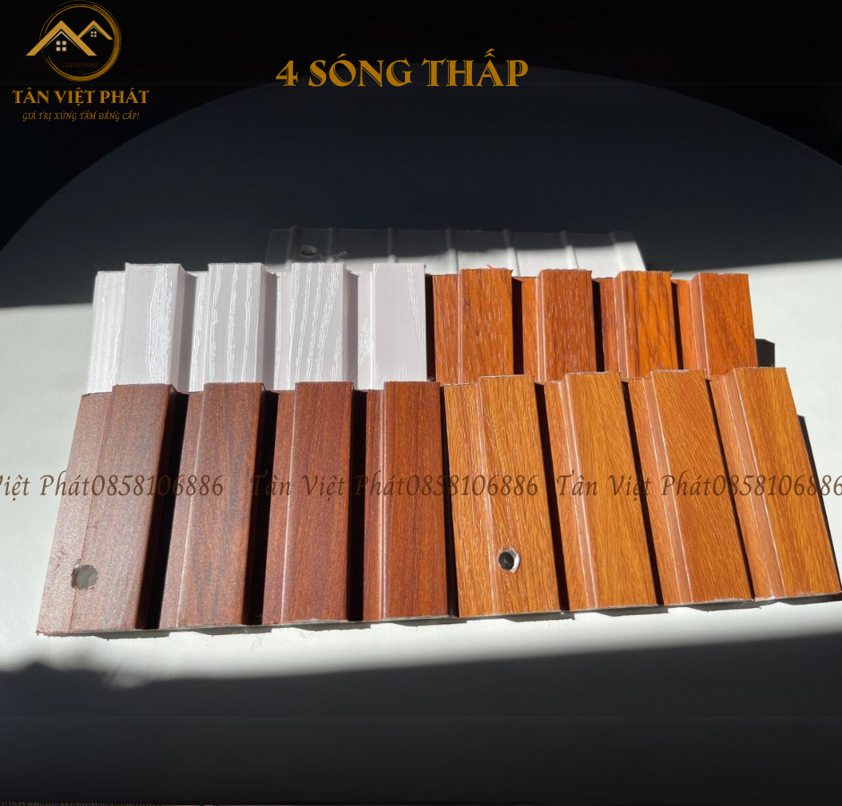 Tại đây, chúng tôi cung cấp các loại tấm ốp lam sóng, lam sóng nhựa giả gỗ, lam sóng ốp tường đầy đủ màu sắc vân gỗ giả gỗ, bạn có thể liên hệ với chúng tôi qua Hotline/Zalo 0858106886 để tư vấn thêm mẫu lam sóng. TÂN VIỆT PHÁT là Nhà cung cấp uy tín tại khu vực ĐÀ NẴNG